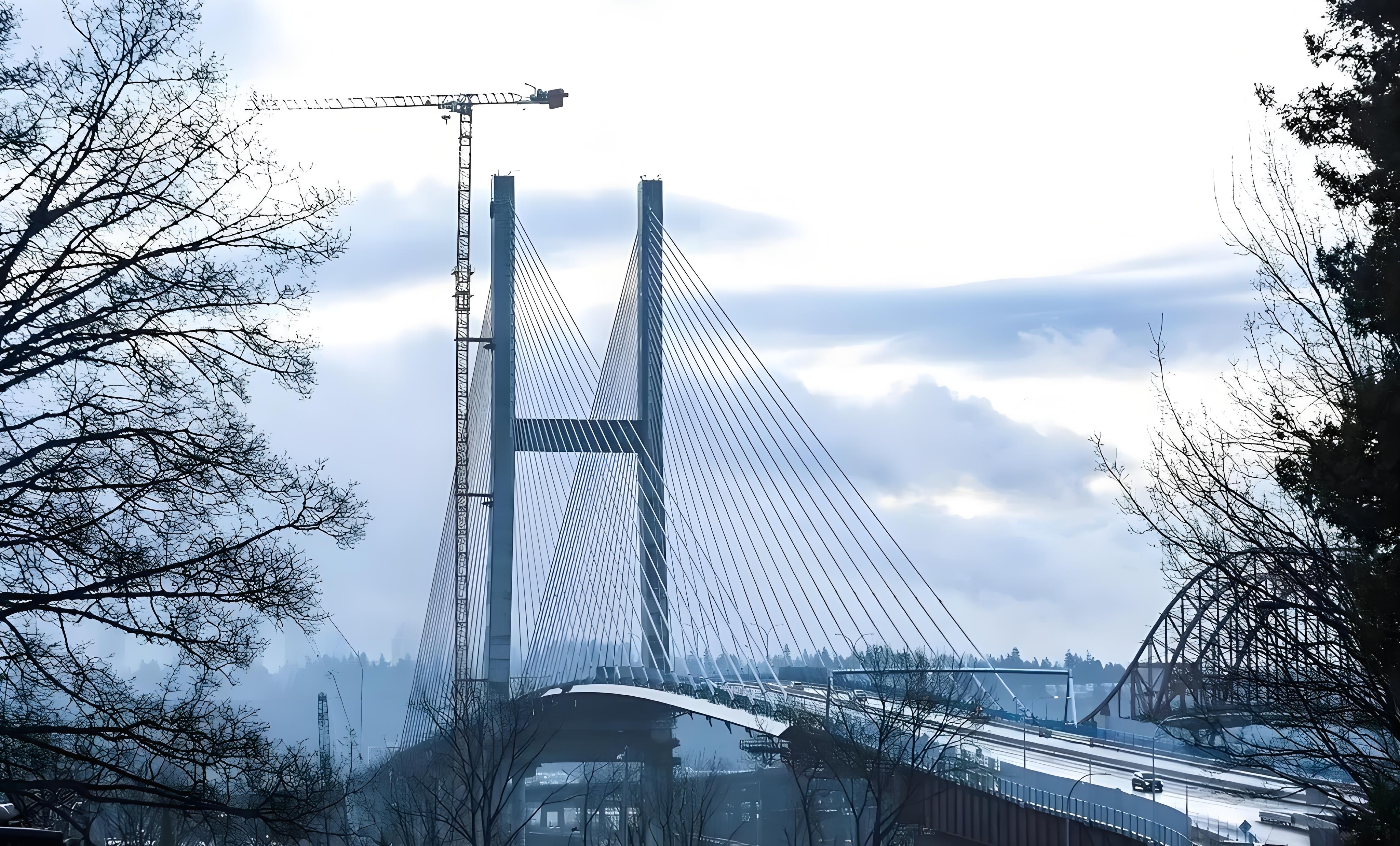 新帕特洛大桥横跨弗雷泽河,是加拿大温哥华地区重要的跨河交通枢纽工程,全长约1530米,为单塔斜拉桥。中铁山桥负责大桥钢结构产品制造、涂装及发运等关键环节,制造执行加拿大和美国双标准。