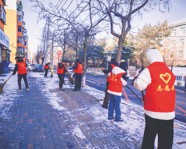 3月5日,中铁七局二公司沈阳地铁第四项目部组织青年志愿者在项目部周边街道开展“学雷锋·清冰雪·保畅通”志愿服务活动,保障市民出行安全。 孔德锐 周金磊 摄影报道