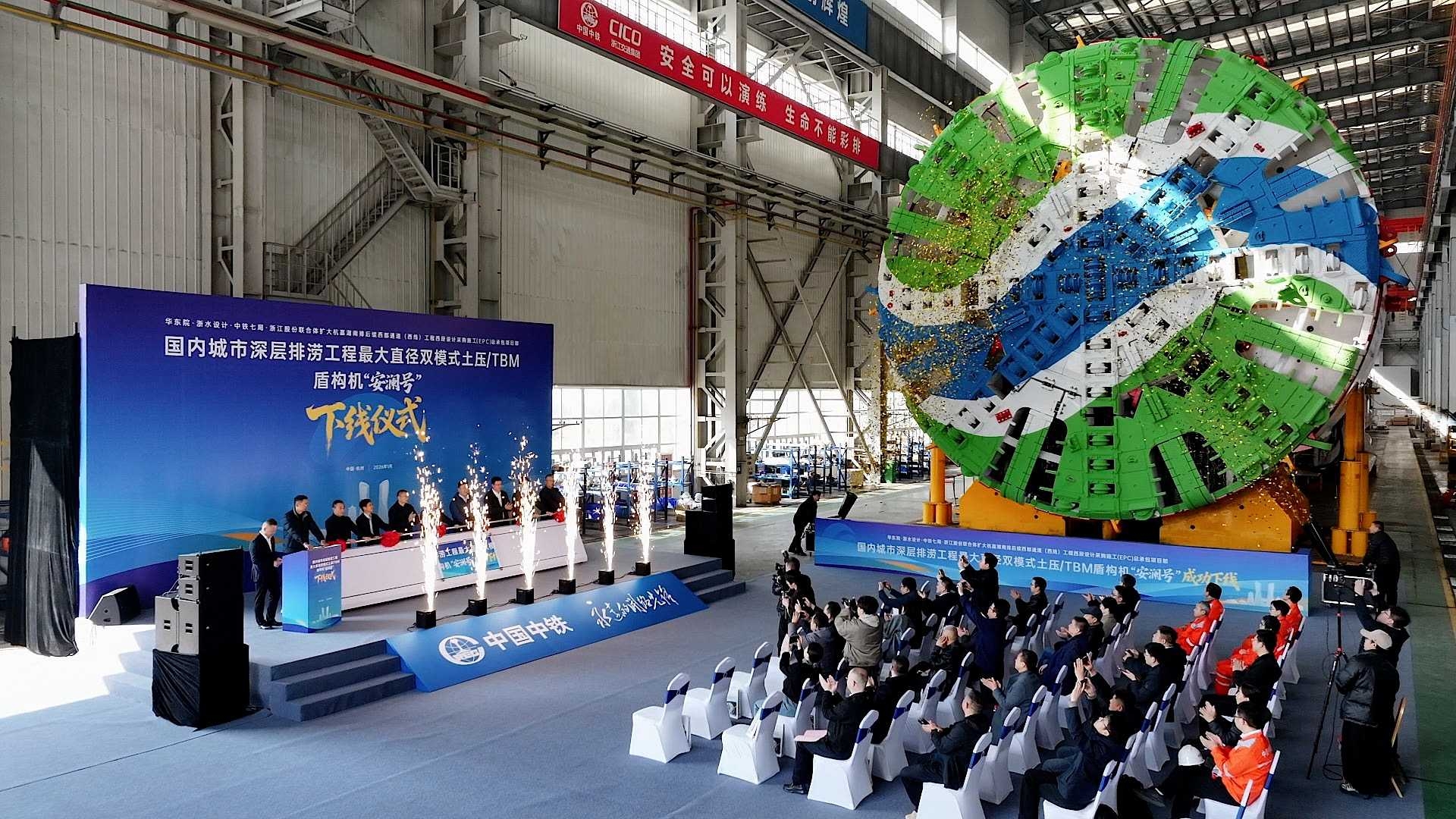 用于扩大杭嘉湖南排后续西部通道工程的“安澜号”盾构机下线