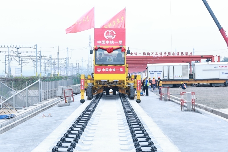 渝万高铁是我国“八纵八横”高速铁路主通道包(银)海、京昆通道的重要组成部分,也是沿江高铁辅助通道的关键一环,正线全长251公里,设计时速350公里,设重庆东、涪陵北、丰都北、忠县、万州北5座车站。中铁一局施工内容涵盖隧道、桥梁、路基,并包含涪陵北站站改、全线双块式轨枕预制及全线铺轨等。其中,铺轨(含站线)总长度约540公里,预计单日最高可铺设21公里轨道。