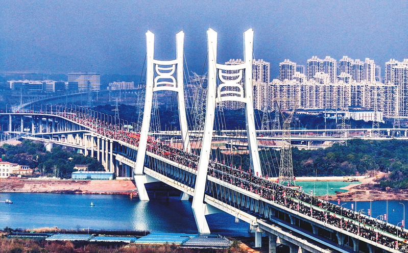 南昌讯 1月4日,中铁大桥局承建、中铁工业旗下中铁九桥负责4.23万吨钢结构制造安装的昌九高铁隆兴大桥(扬子洲赣江公铁大桥公铁合建段)公路部分正式通车。