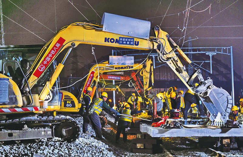 1月16日4时,中铁八局、中铁电气化局共同完成成都八里站关键过渡改造,即信号倒替与线路拨接施工,既实现74年老火车站功能升级,又为成渝中线高铁引入成都站提供条件。