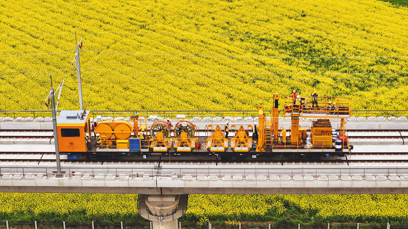 3月28日,(南)昌九(江)高铁庐山南站至共青城东站区间,随着恒张力放线轨道车缓缓启动,中铁武汉电气化局负责的昌九高铁全线接触网架设施工正式拉开帷幕,完成首条接触网导线架设。接触网导线作为列车的直接供电载体,其平直度、张力及空间几何参数直接关系到列车运行状态。通过实时监测并动态调整架线参数,此次架设的导线张力、平直度误差精准控制在0.1毫米内。昌九高铁线路全长138公里,设计时速350公里,全线接触网导线共计335.4公里,预计今年6月份全部架设完成。 陈亚娜 赵薇 摄影报道
